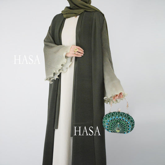 HASA's series HS6360 Summer Ombré Gradient Abaya with Pleats and Fluted Bell Cuffs