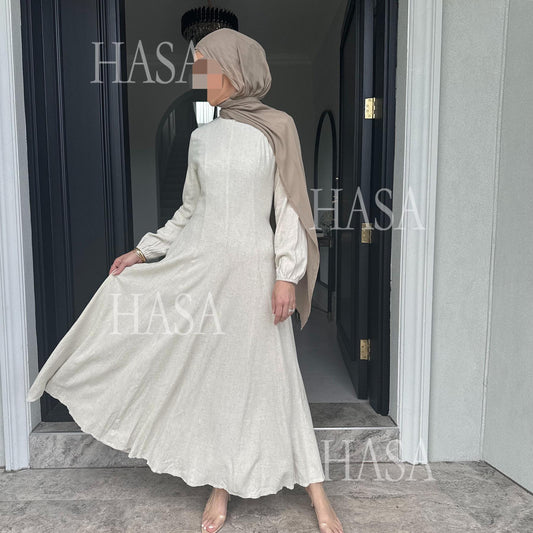 فستان HASA HS5868 بلون سادة مريح مع رباط للخصر