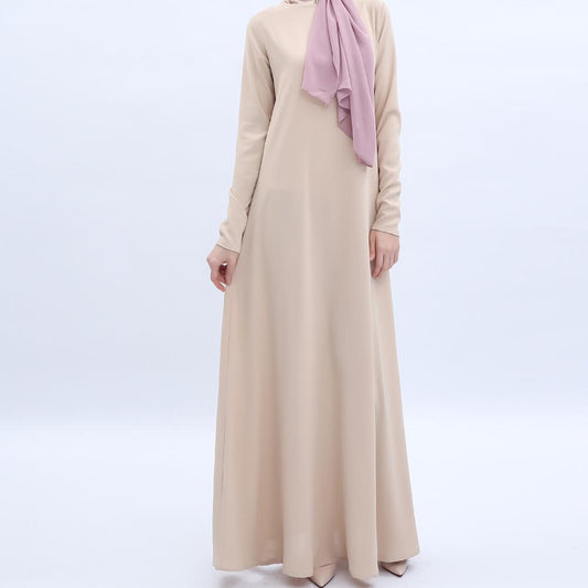 فستان مسلم طويل فضفاض بأكمام طويلة ورقبة دائرية وخصر من الدانتيل