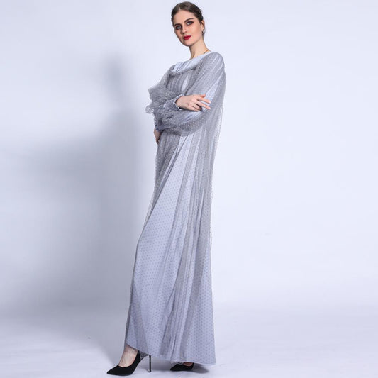 فستان نسائي طويل بأكمام فانوس وشبكة منقط جديد