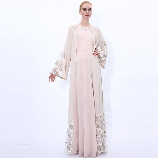 فستان إسلامي نسائي جديد بلون سادة بتطريز كبير