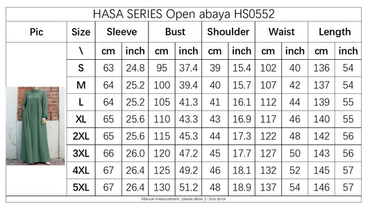 عباية أنيقة مفتوحة بثلاث طبقات من قماش الحرير الساتان من مجموعة HASASERIES HS0480 بأكمام من طبقتين