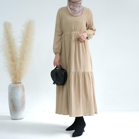 تنورة ماكسي واسعة بأكمام طويلة وخصر مرتفع من HASASERIES HS0676 مع ظهر برباط