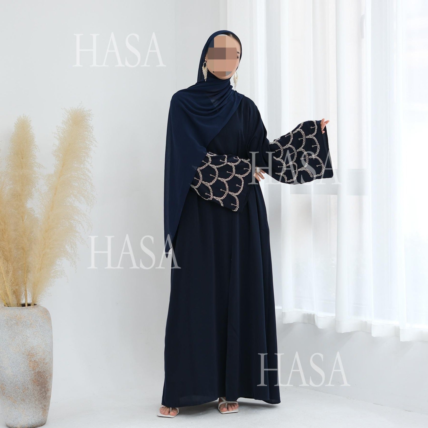 HS6608 Solid Color Hand-beaded Long Cardigan (headscarf Not Included)