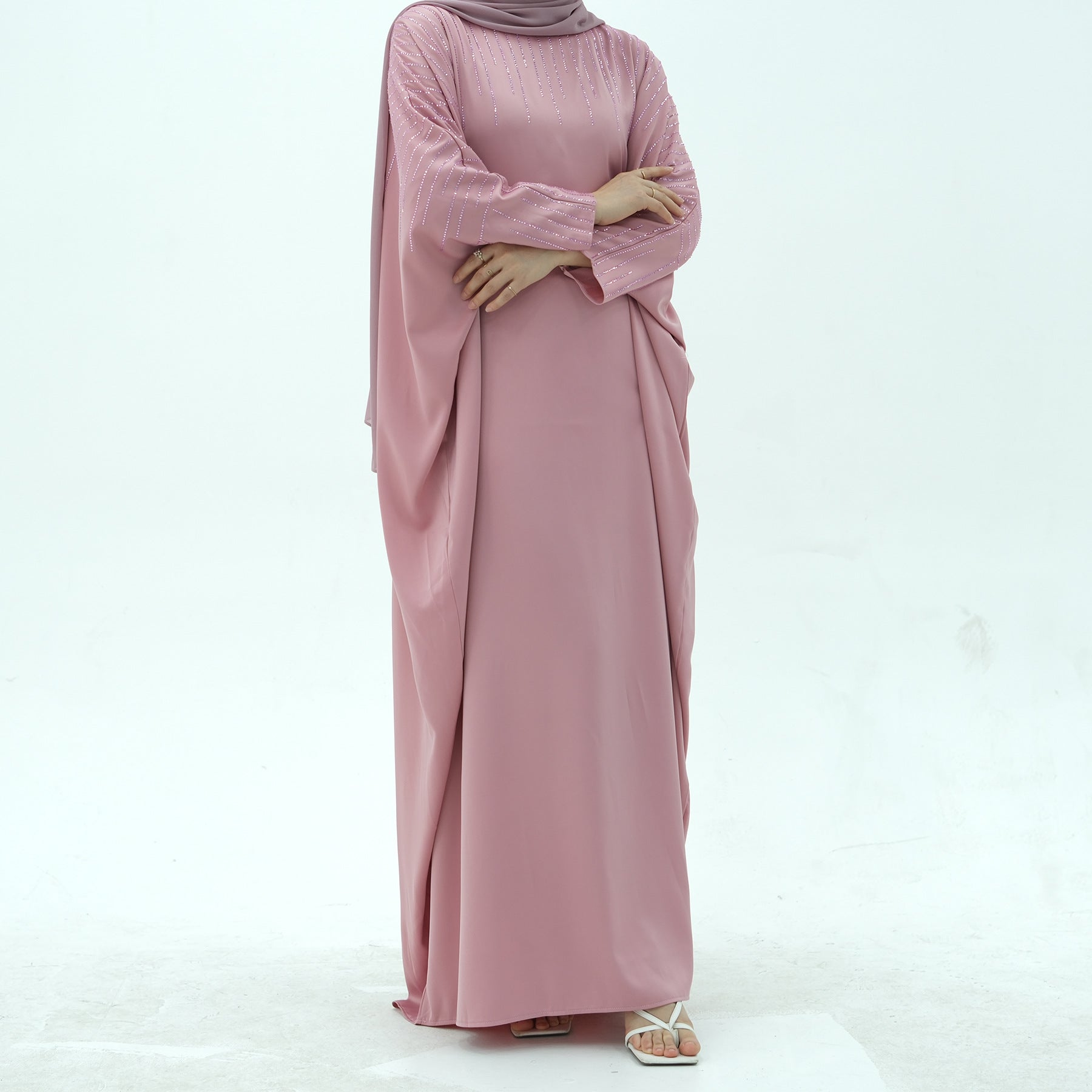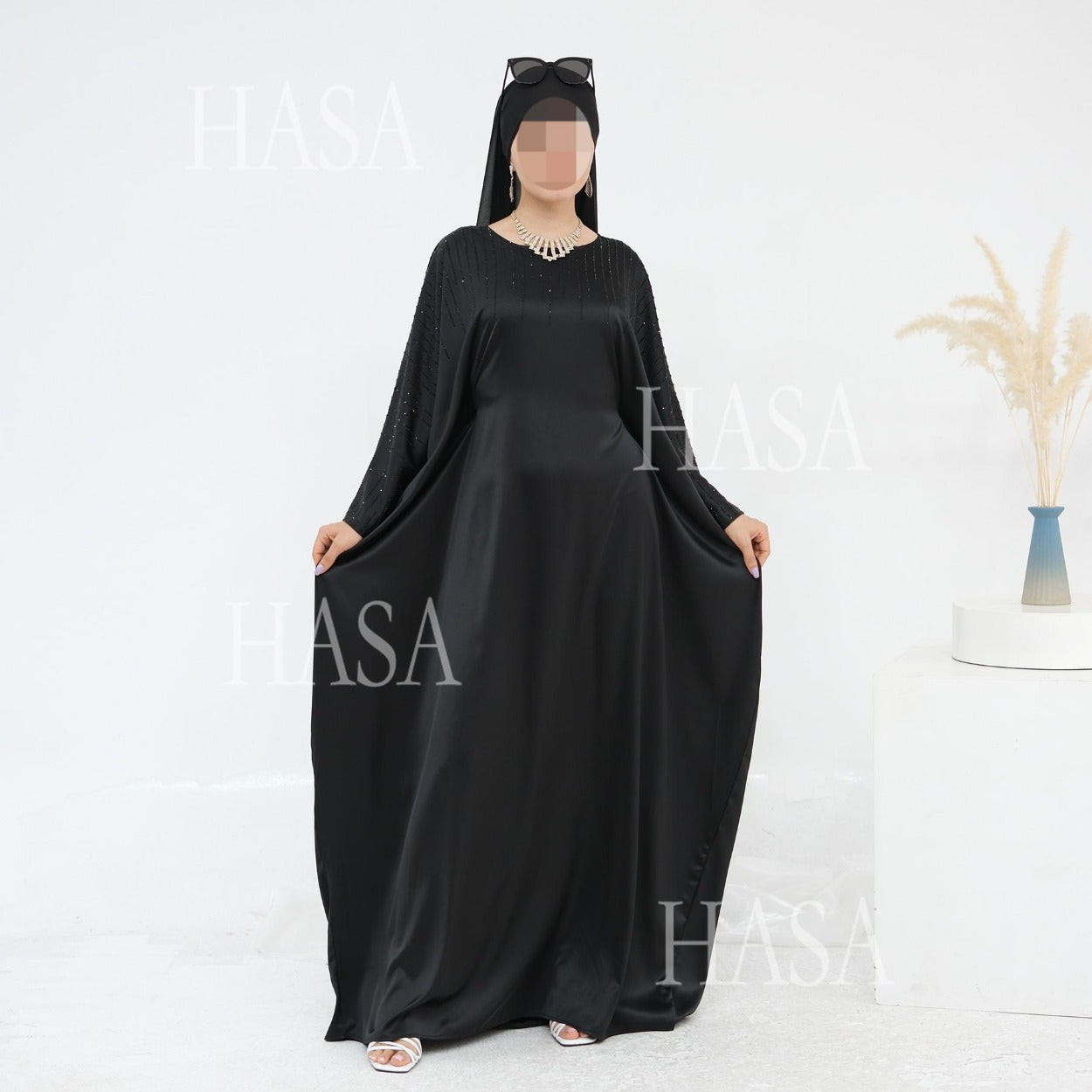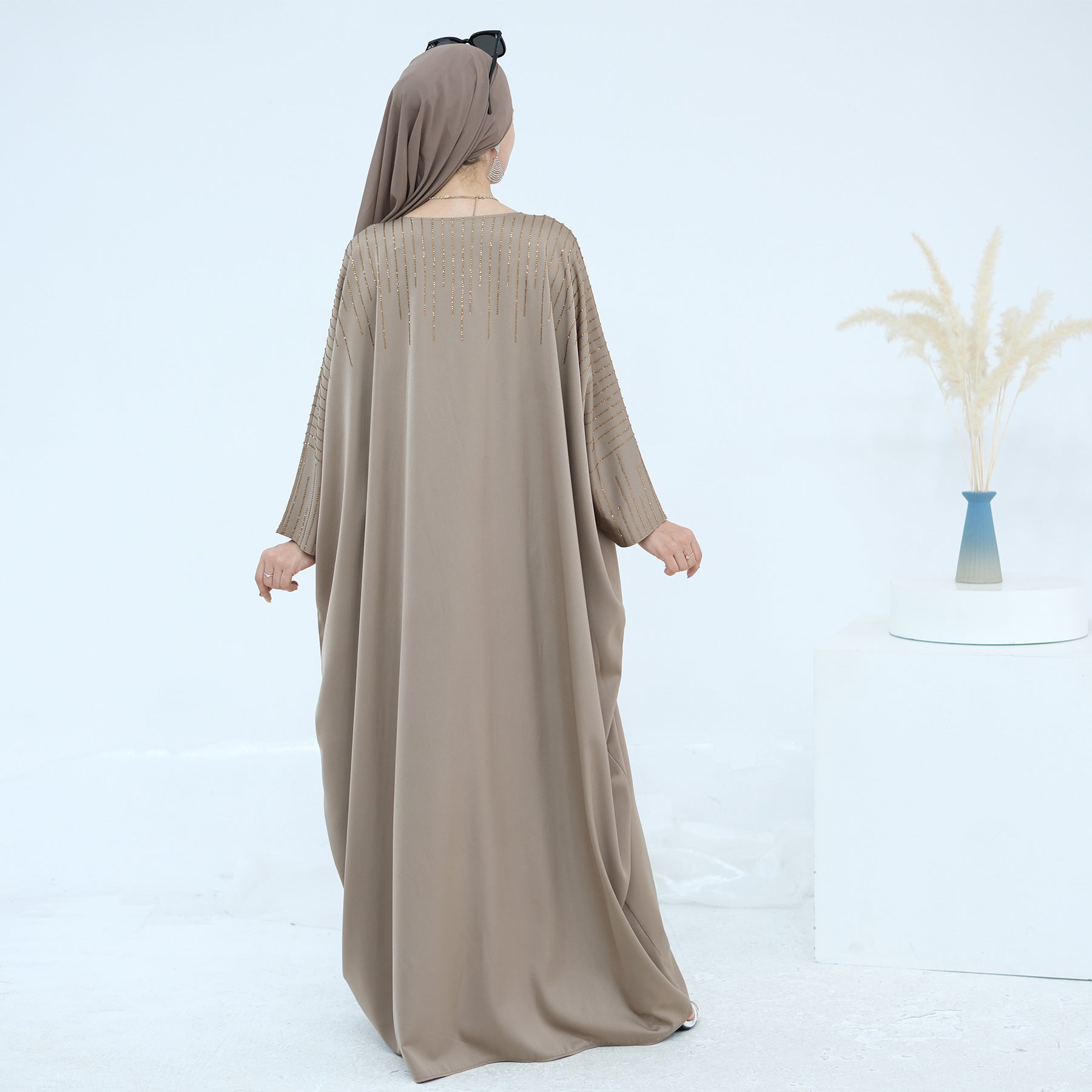 HS6610 Rhinestone-embellished long Abaya dress (headscarf not included)