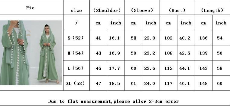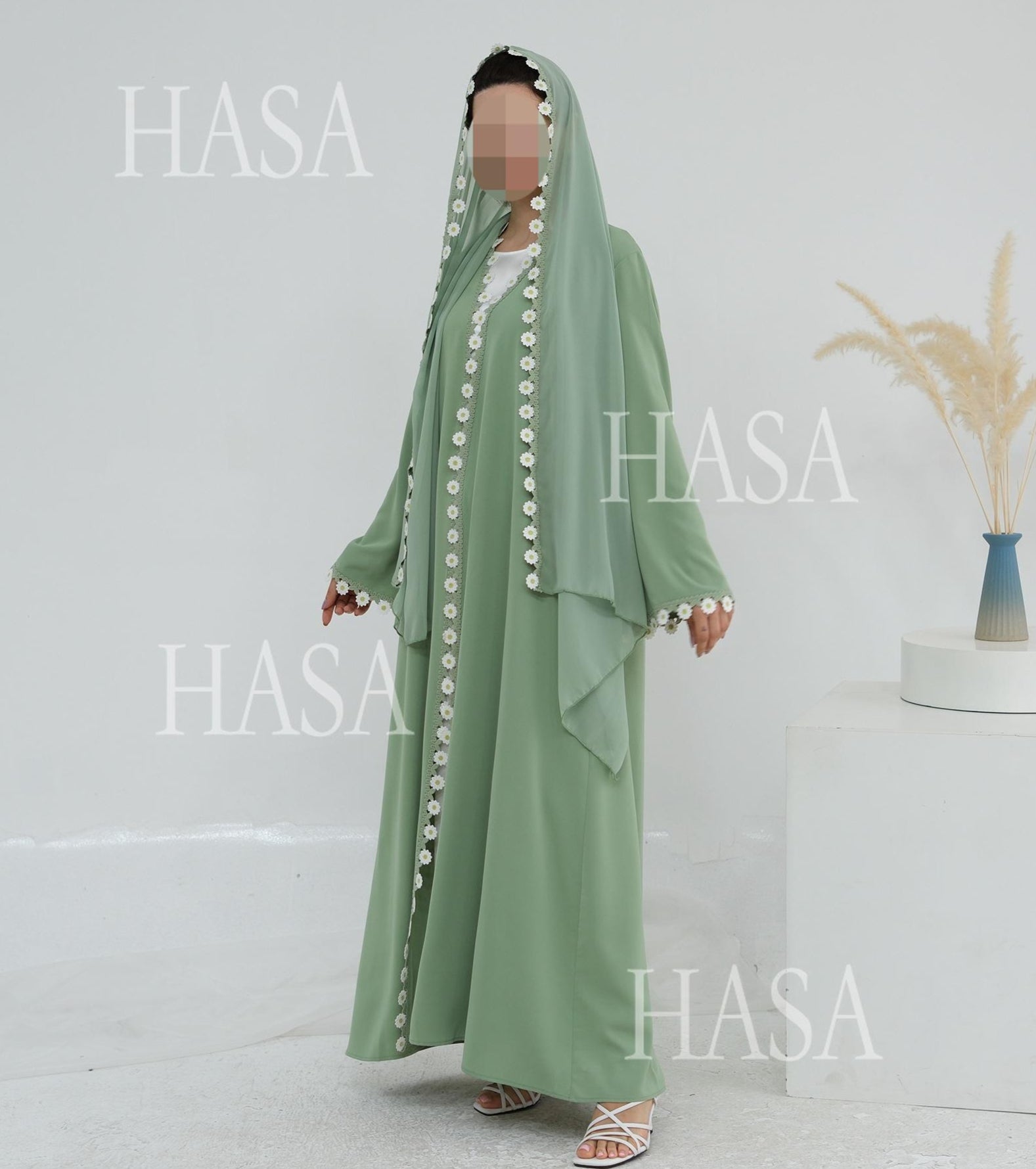 HS6616 Green Flower Stitching Cardigan Two-Piece Set (Including Headscarf)