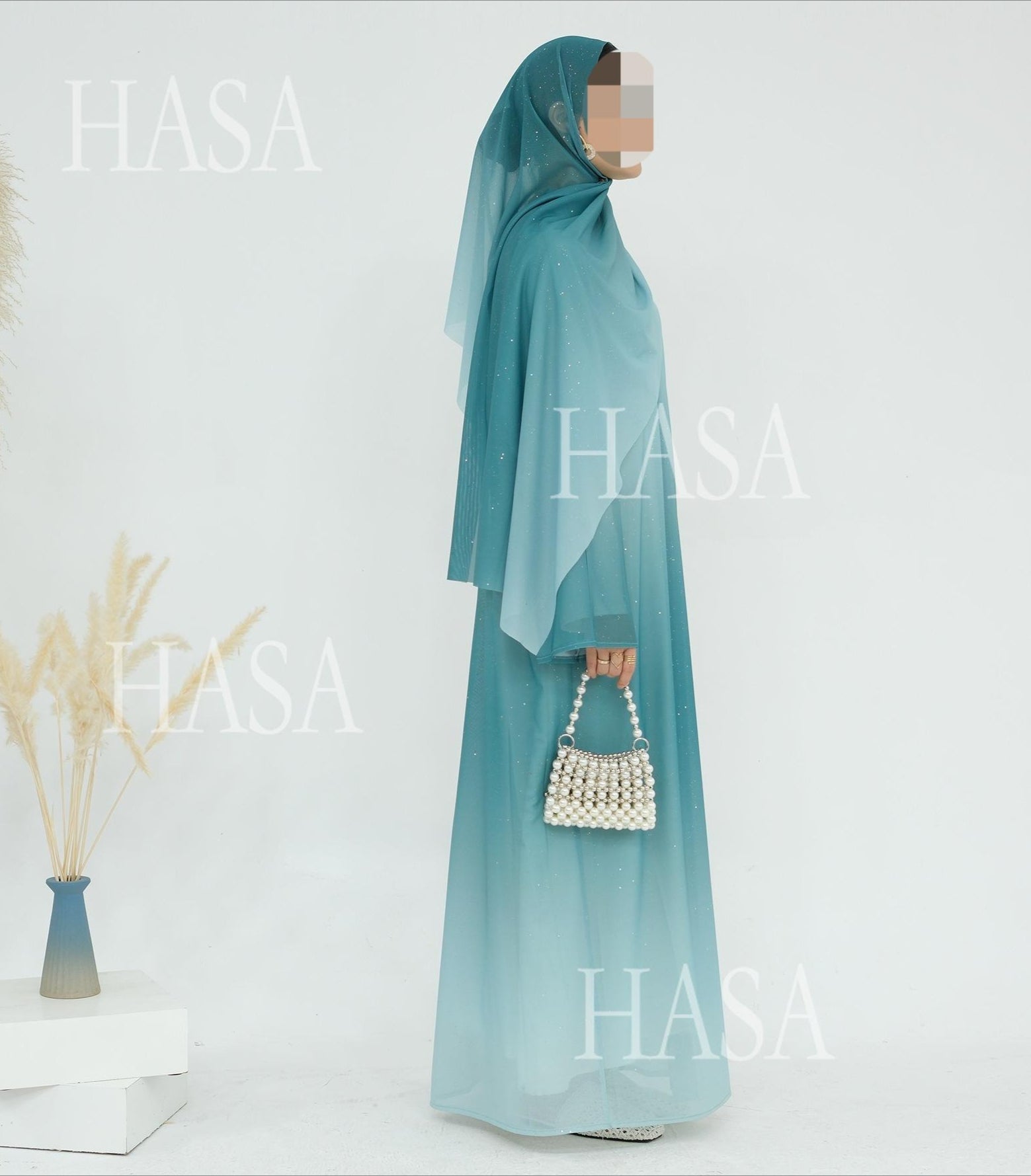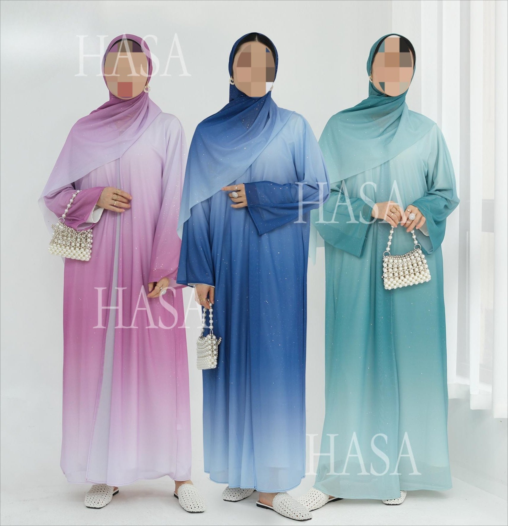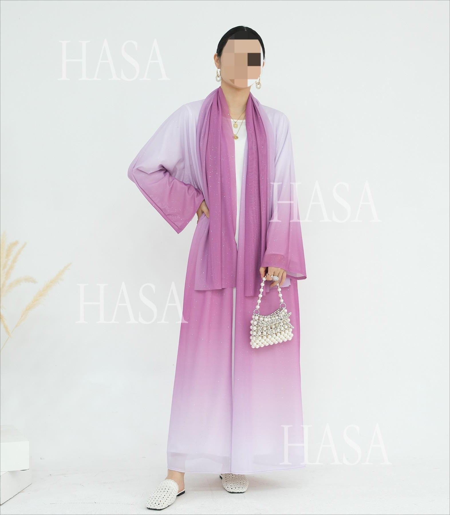 HS6617 Gradient Color Long Cardigan Two-Piece Set (Including Headscarf)