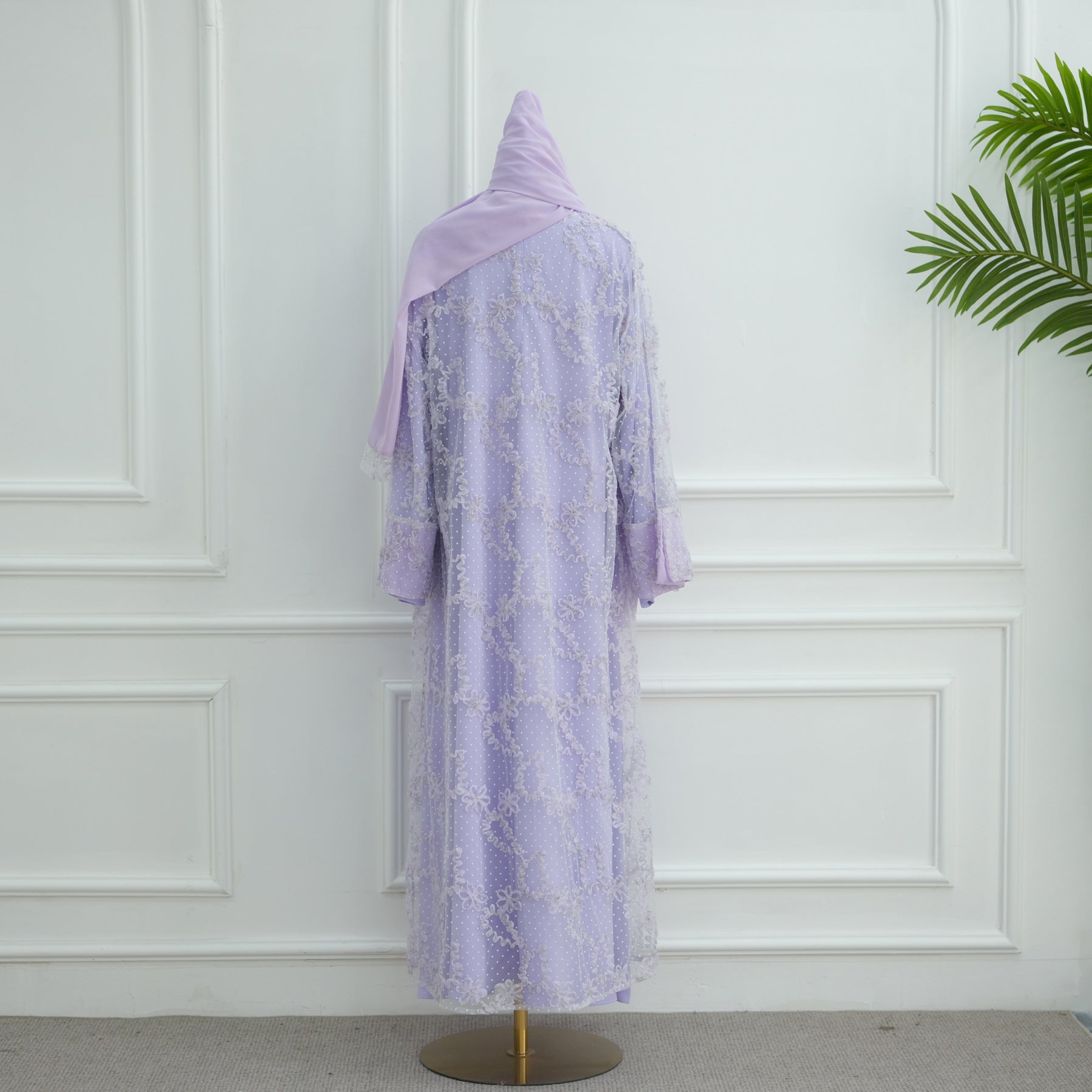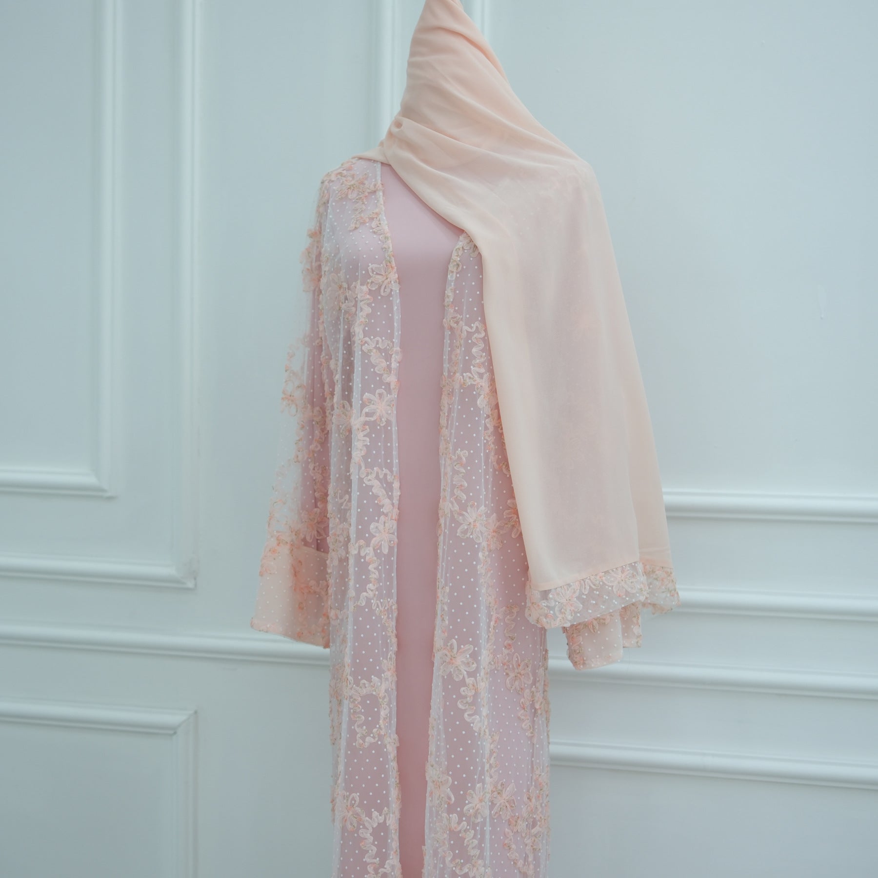 HS6622 3D flower mesh cardigan (optional headscarf and inner layer)