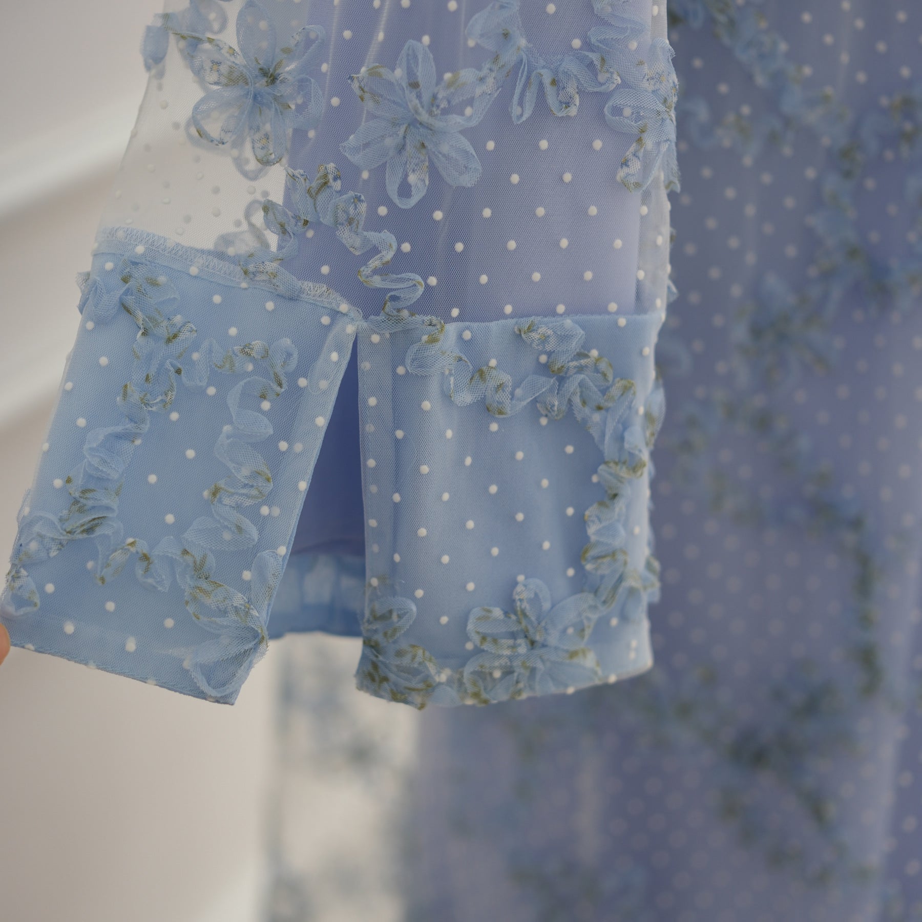 Design Elements: The overall design focuses on three-dimensional flowers, complemented by semi-transparent mesh for added layering; the cardigan style allows for easy on and off and can be layered with inner layers as needed.