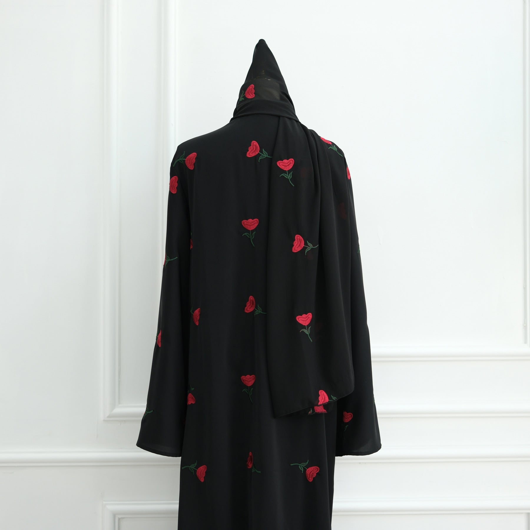 HS6631 Long cardigan with floral embroidery (headscarf optional)