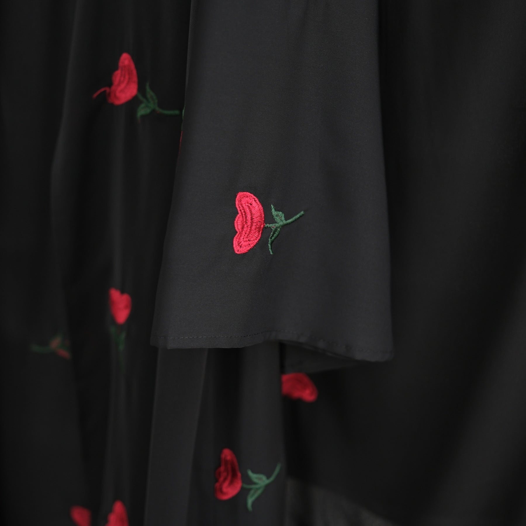 Embroidery Design: The front panel is decorated primarily with floral embroidery, featuring delicate patterns and clear lines, adding a soft and layered visual effect to the overall look.