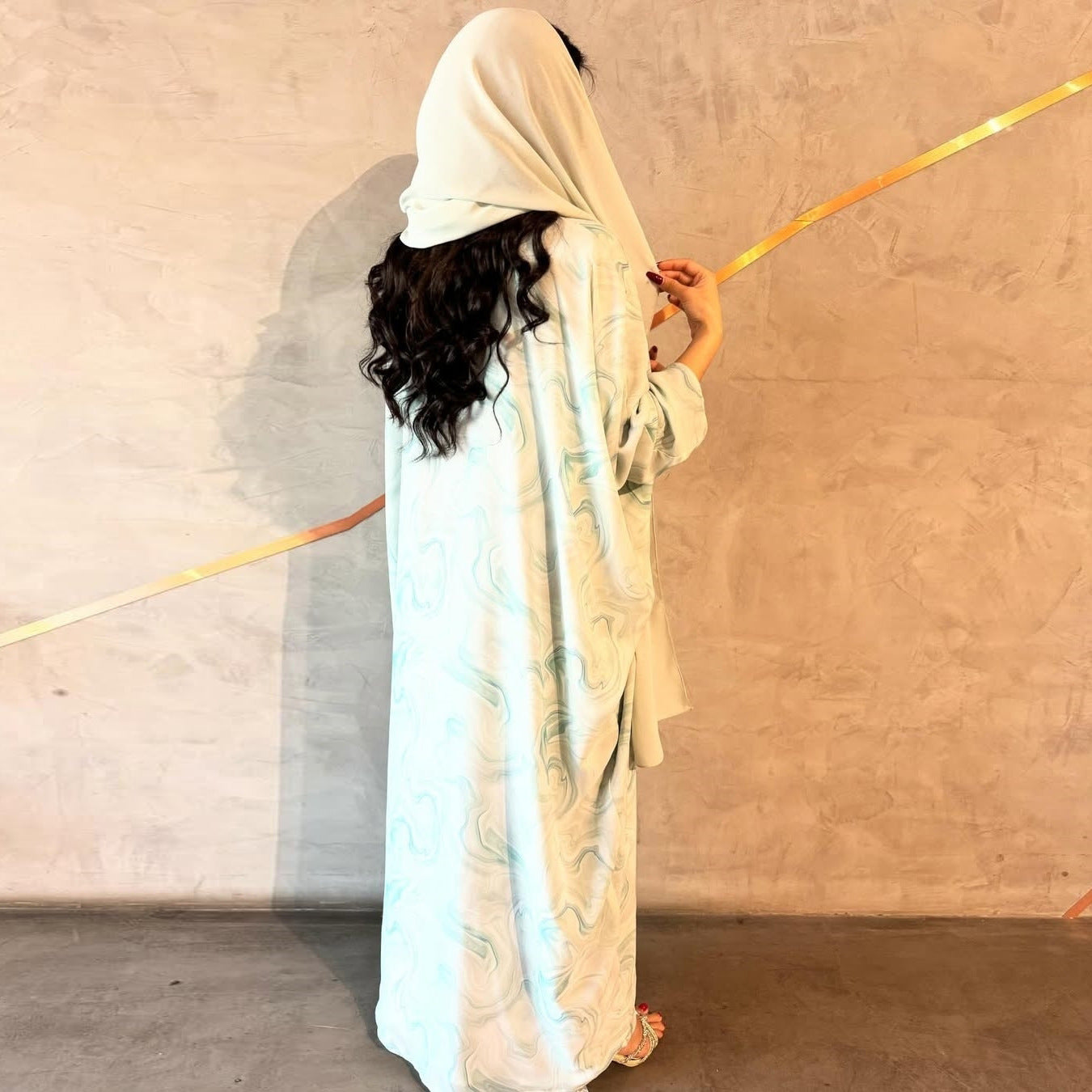 Design Structure: The set includes a long cardigan-style robe and a matching printed headscarf. The robe has a loose, straight cut with comfortable sleeves for easy everyday movement.