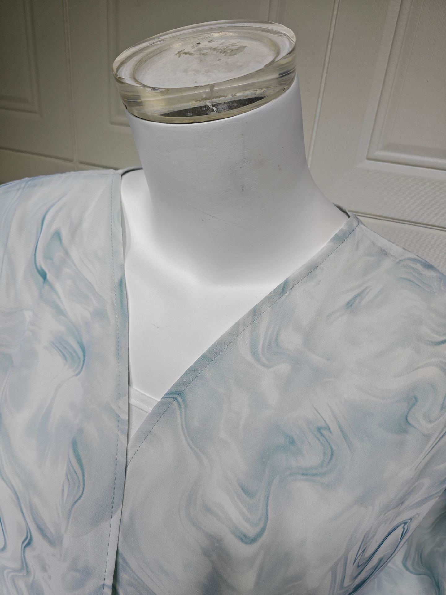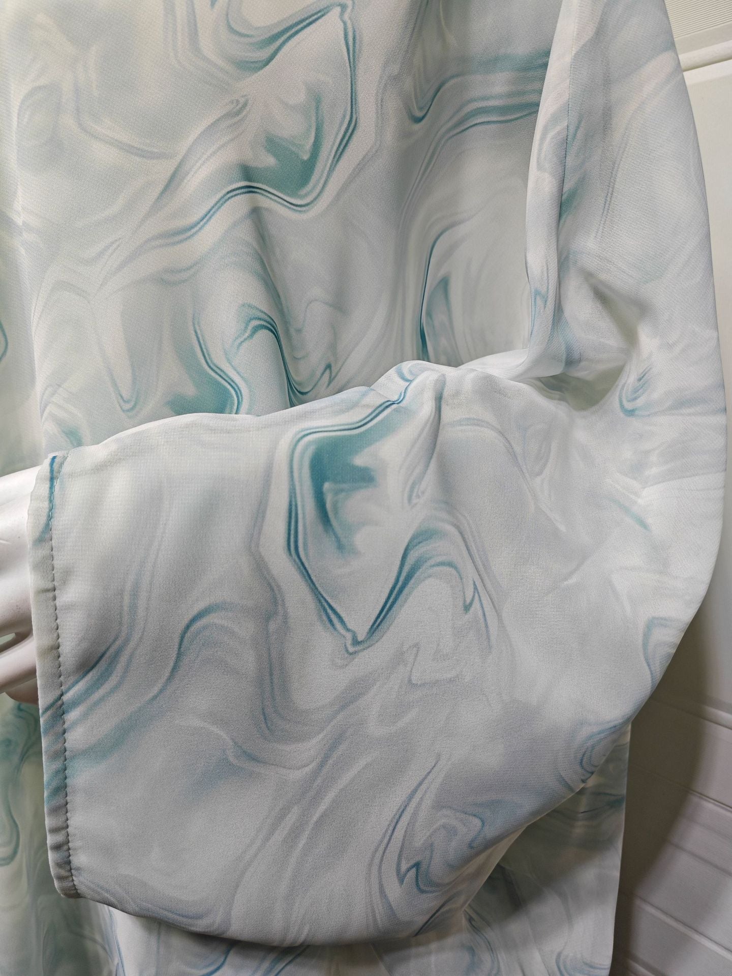 Fabric Features: The outer layer is made of lightweight chiffon, offering excellent breathability and a soft touch, making it suitable for warmer seasons. The print is clear, and the fabric has a natural drape.