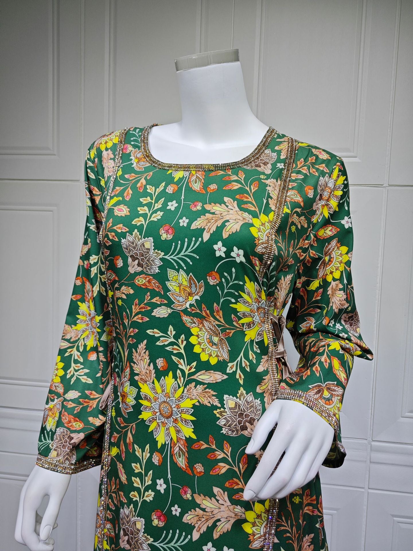 The dress features a soft floral print with clear color gradation and a naturally harmonious visual effect.