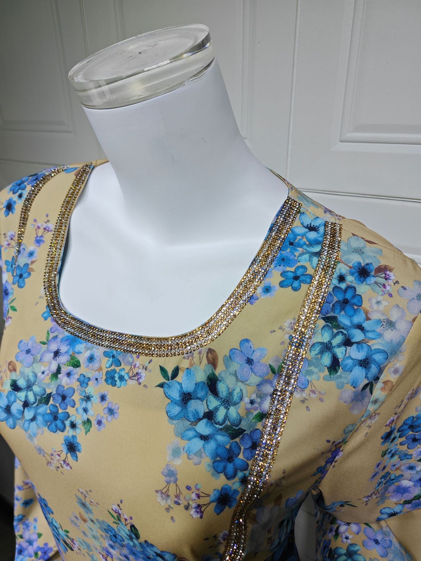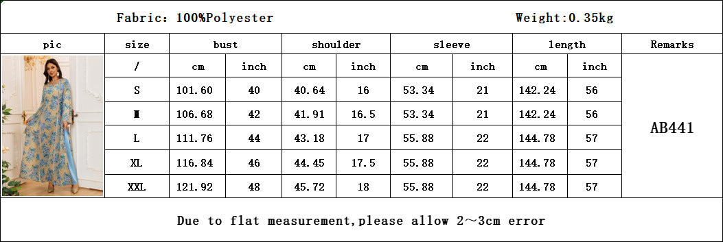 The skirt has a long, flowing design, and the overall fit is relatively loose, making it more forgiving of different body types.