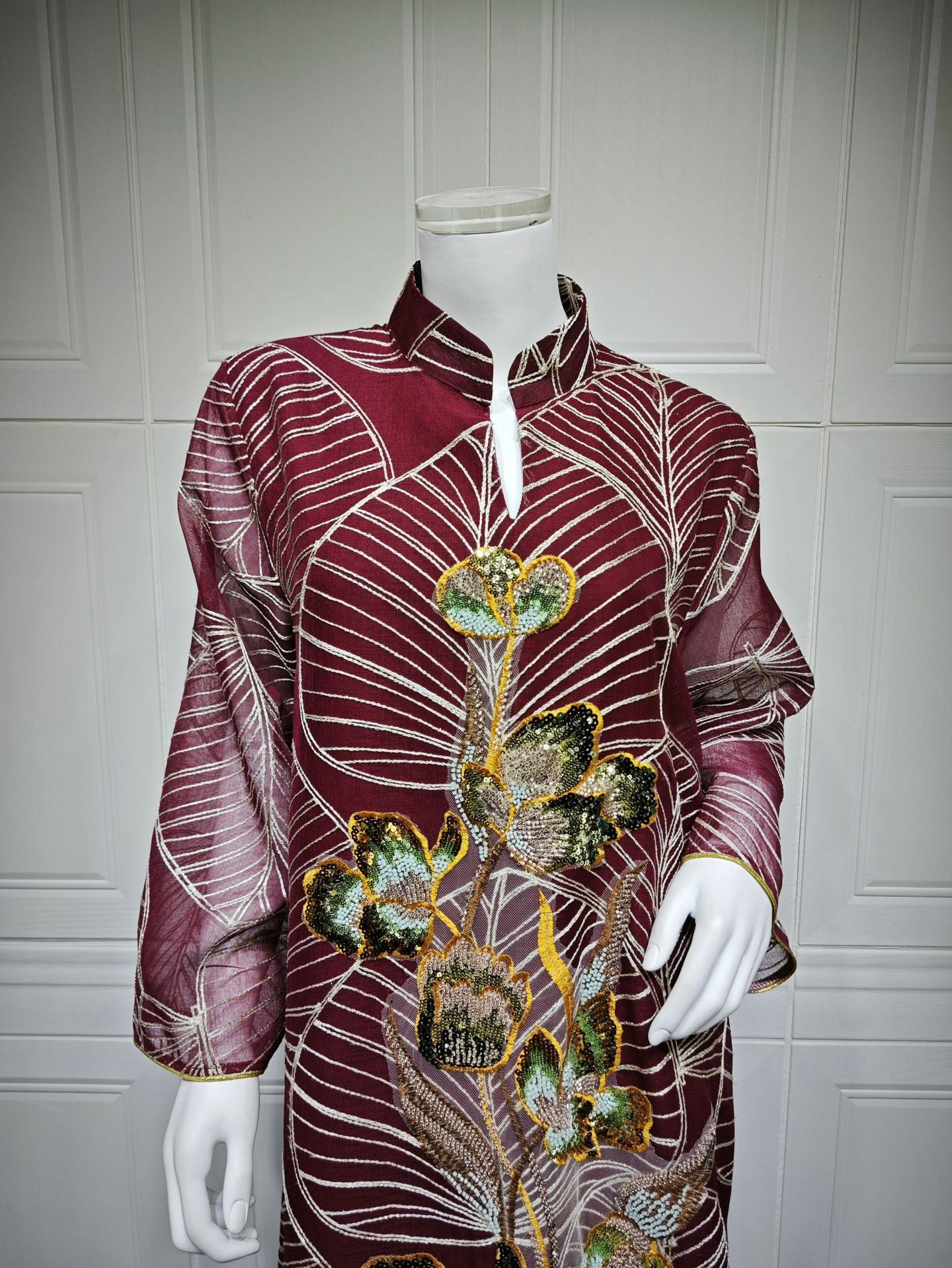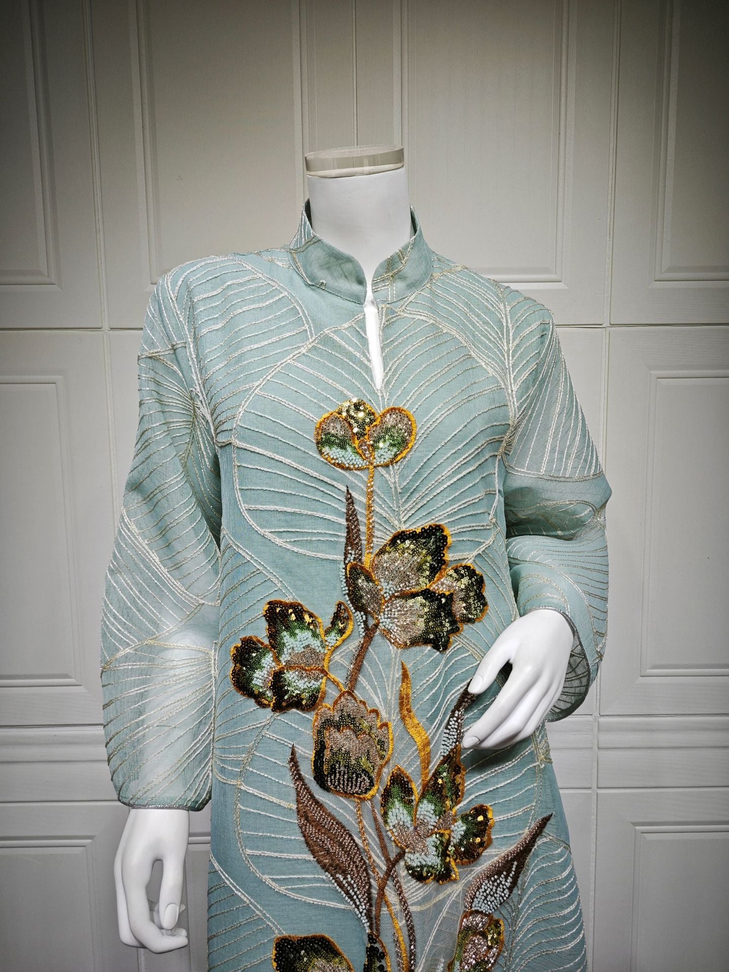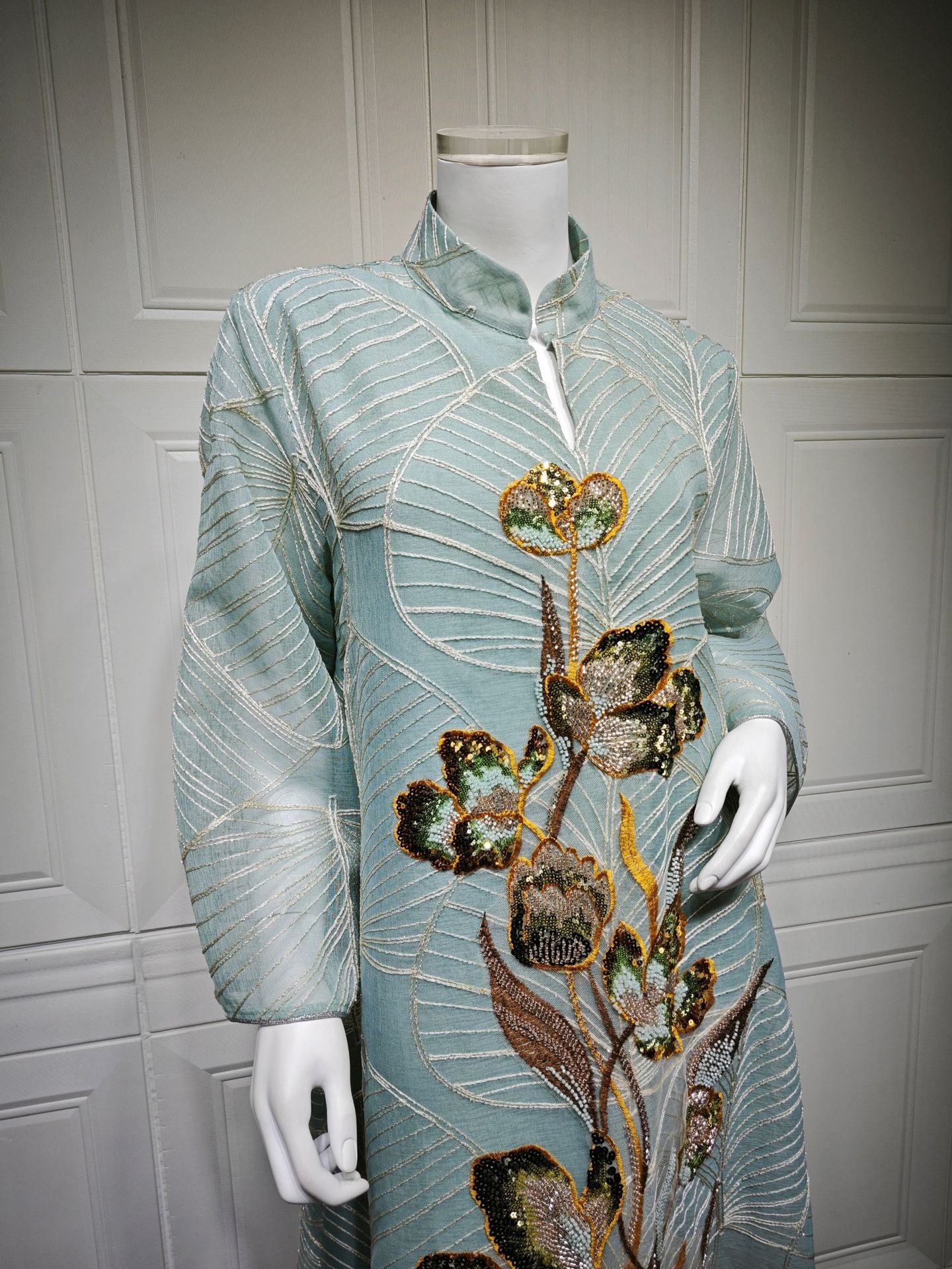 HS6657 Women's Long Robe Dress with Mesh Embroidery