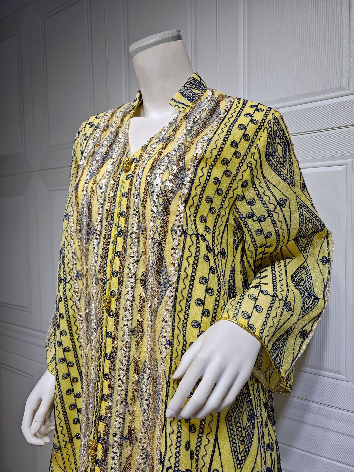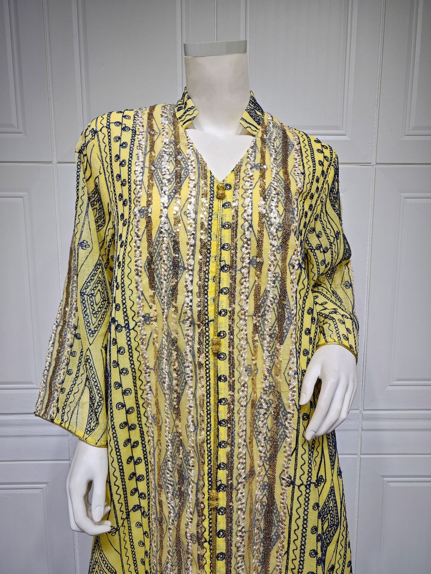 Sequin embellishments are added in selected areas, offering a subtle shine that enriches the overall design without appearing overly flashy.