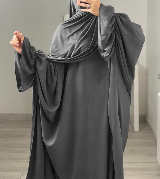 HASA HS0559 Crepe Abaya with Pockets + Layered Khimar Set