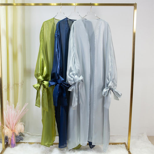 HASASERIES HS0929 Shiny Silk Balloon Sleeves Lined Cardigan