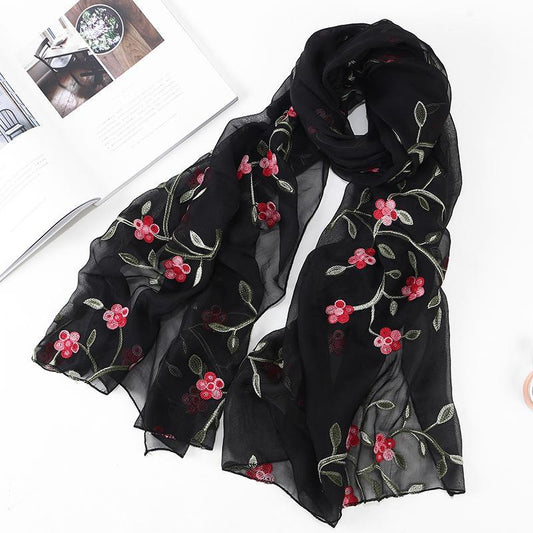 HASASERIES HS1132 Chiffon Flower Embroidered Scarf