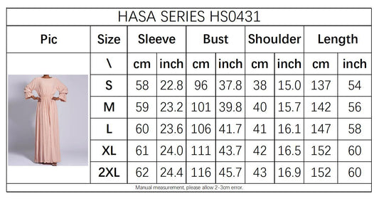 HS10043 HASA SERIES Large Lantern Sleeves Long Bright Silk Dress Stand Up Collar Back Tie Women's Dress Abaya