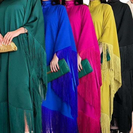 HS0467 Ladies Dolman Sleeve Tassel Kaftan High Fashion Dress modest party dress