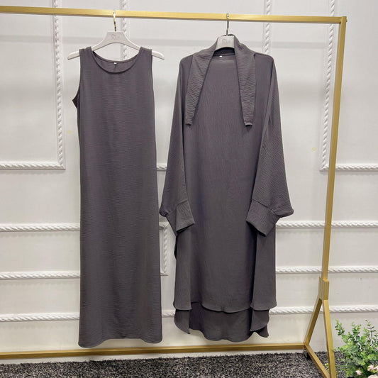 HASASERIES HS0719 Cardigan with Vest Dress Abaya Robe