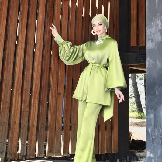 HS0464 2 PCS SET Middle Eastern Solid Color Robe Set Dress
