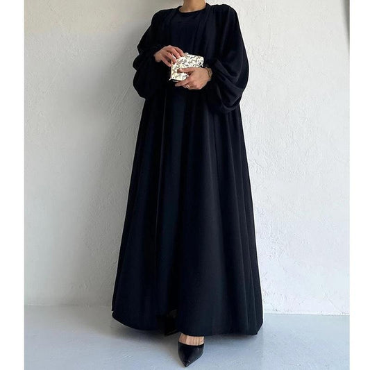 HS0479 Two Pieces Set Nidha Open Abaya with Bubble Sleeves and Inner Dress