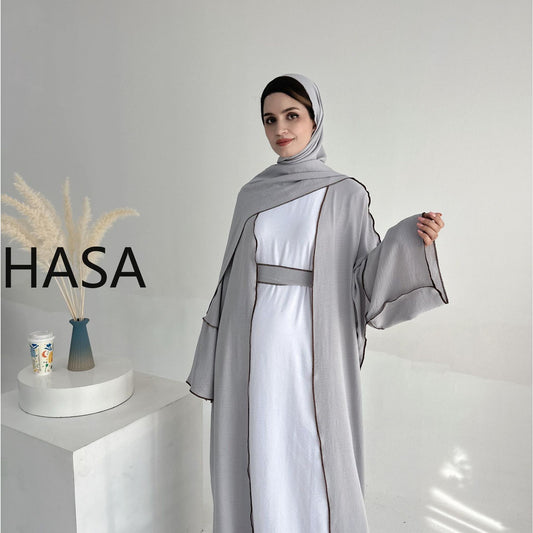 HASA HS1246H 2 PCS SET Crepe Solid Color Loose Hem Cardigan Robe with Hijab