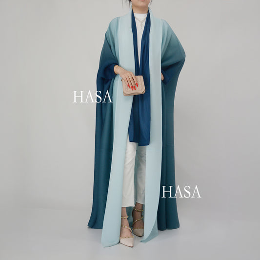 HASA's series HS6360 Summer Ombré Gradient Abaya with Pleats and Fluted Bell Cuffs