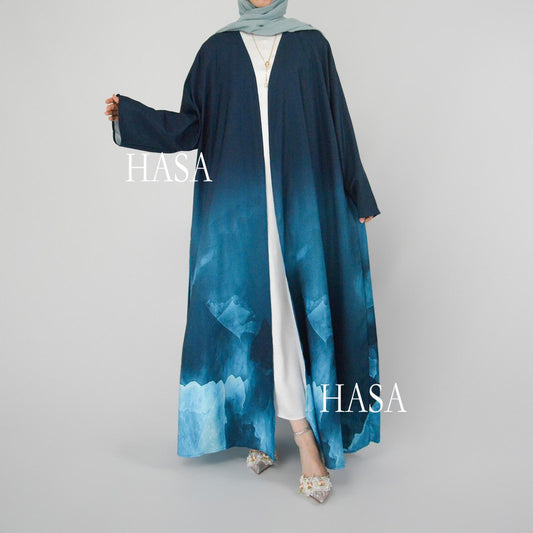 HS6324 Artistic Ombré Brushstroke Summer Kimono Abaya