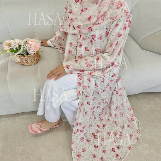 HS6515 Summer Printed Chiffon Jacket and Headscarf Two-Piece Set