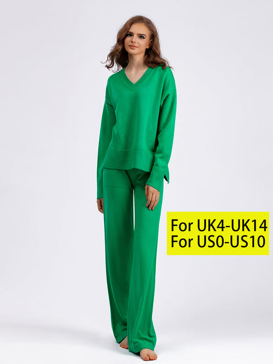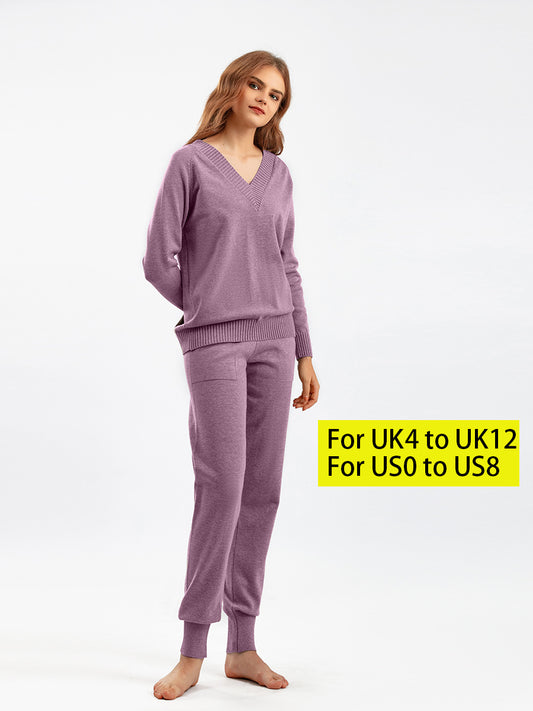 HS0476 autum and winter knitted 2 PCS SET V-neck with pockets