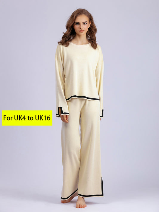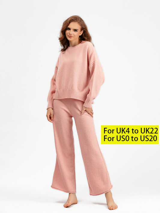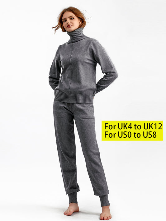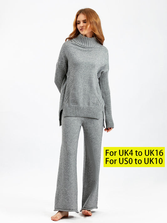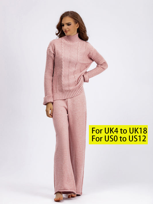 HS0341 high neck winter warm wide leg pants knitted 2 PCS SET