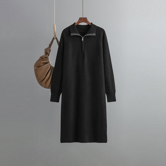 HS0338 knitted dress women 2022 spring and autumn senior sense of zipper pullover outside through the knee sweater long dress