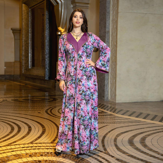 Robe Abaya HASASERIES HS1075 Nouvelle robe imprimée en strass