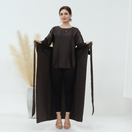 Robe caftan en crêpe HASASERIES HS0997 avec ceinture intégrée et manches chauve-souris