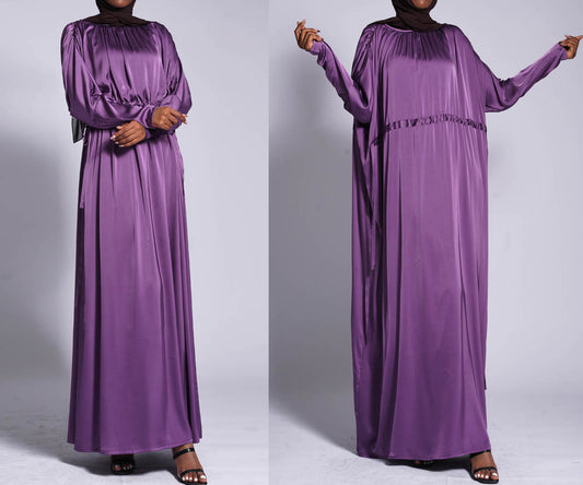 HS0435 Robe d'été à cordon de serrage devant et dos, couleur unie, manches raglan, jupe longue pour femme