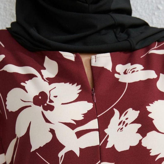 HS10032 Robe d'été en rayonne à col carré et taille haute