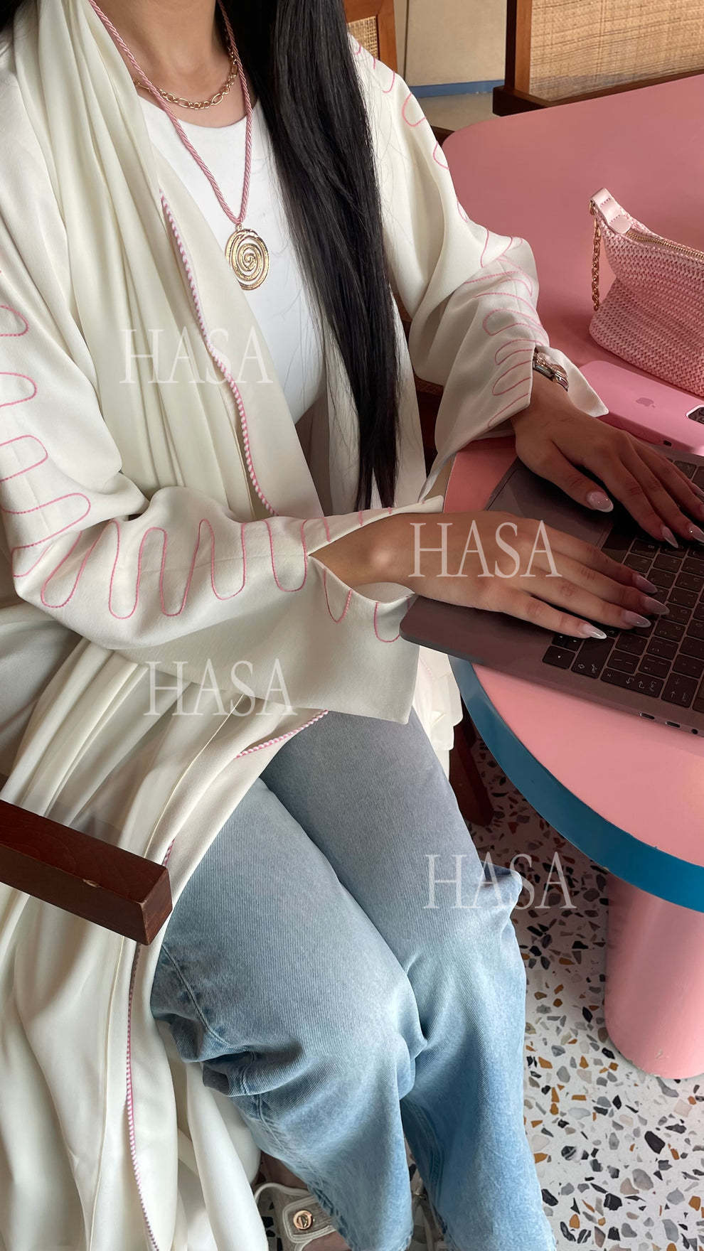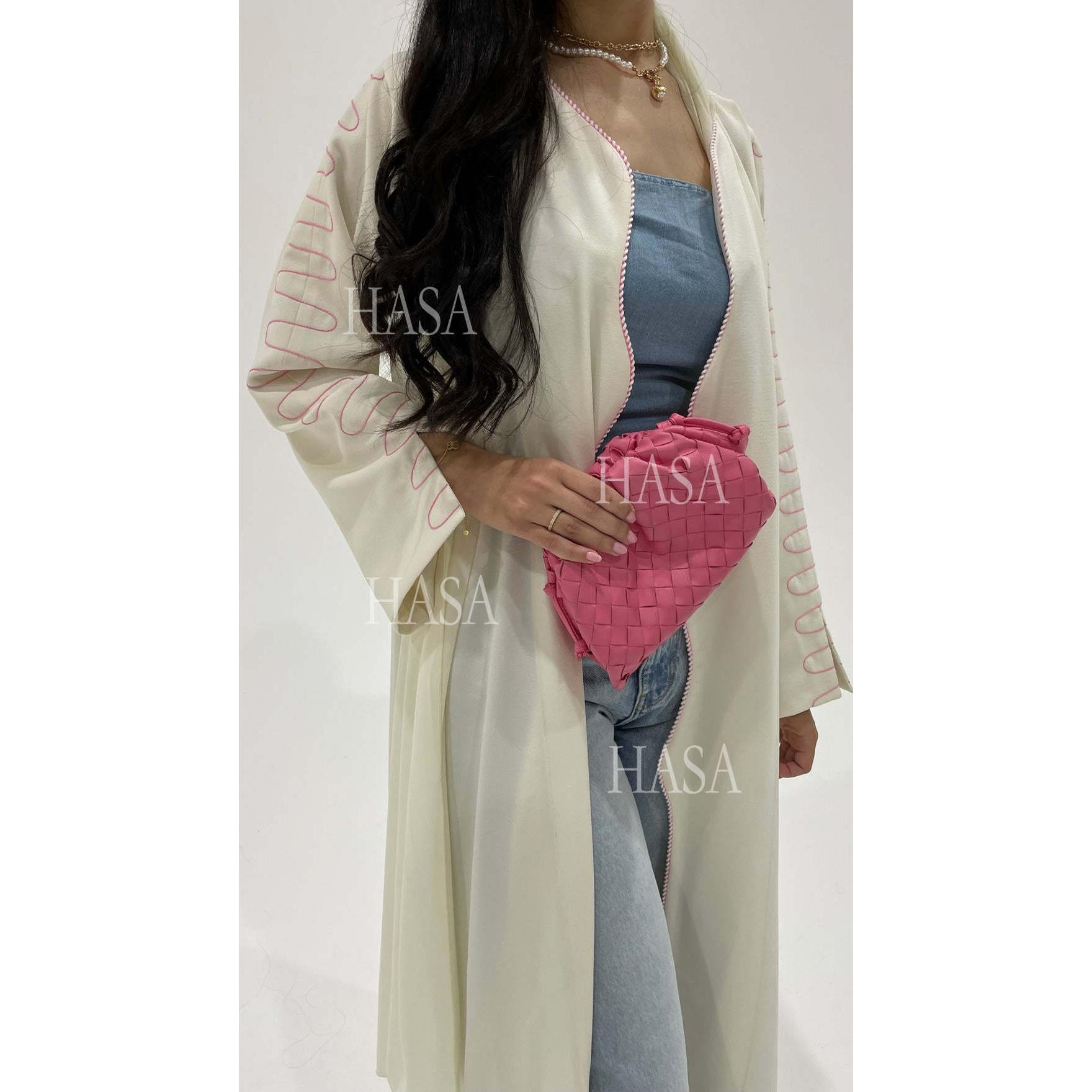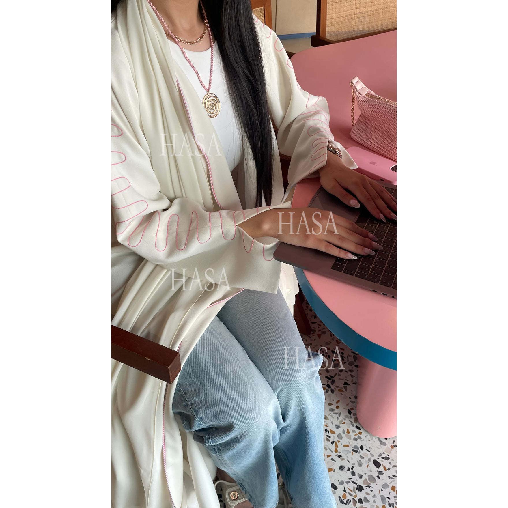 HASA's Series HS6582 Abaya Women's Long Embroidered Cardigan Jacket with Wavy Edges