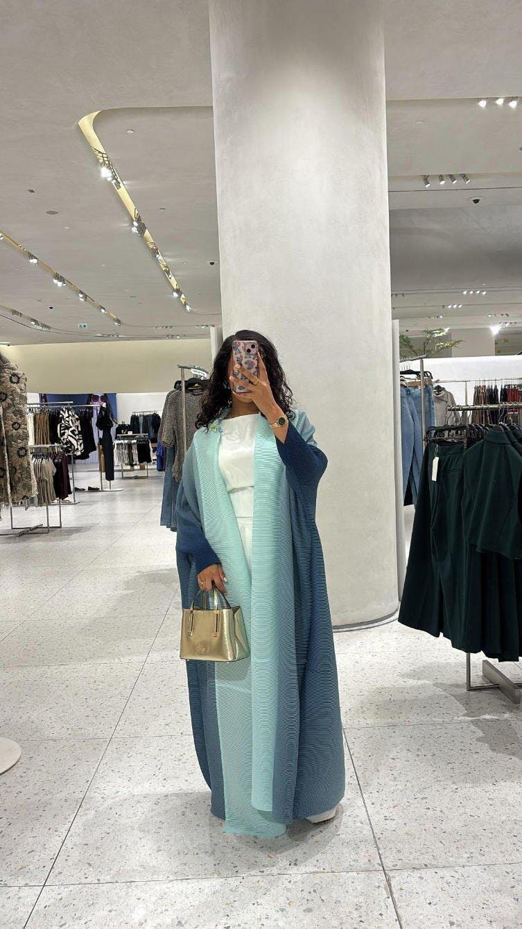 HASA HS1245 Ombré Abaya Loose Fashion Robe with Pleated Patchwork Detailing