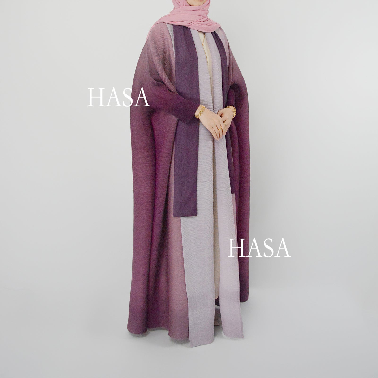 HASA HS1245 Ombré Pleated Patchwork Open Abaya Robe