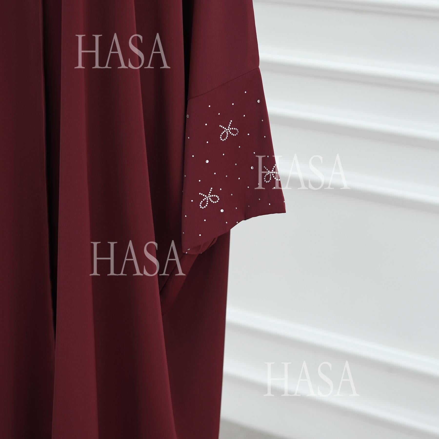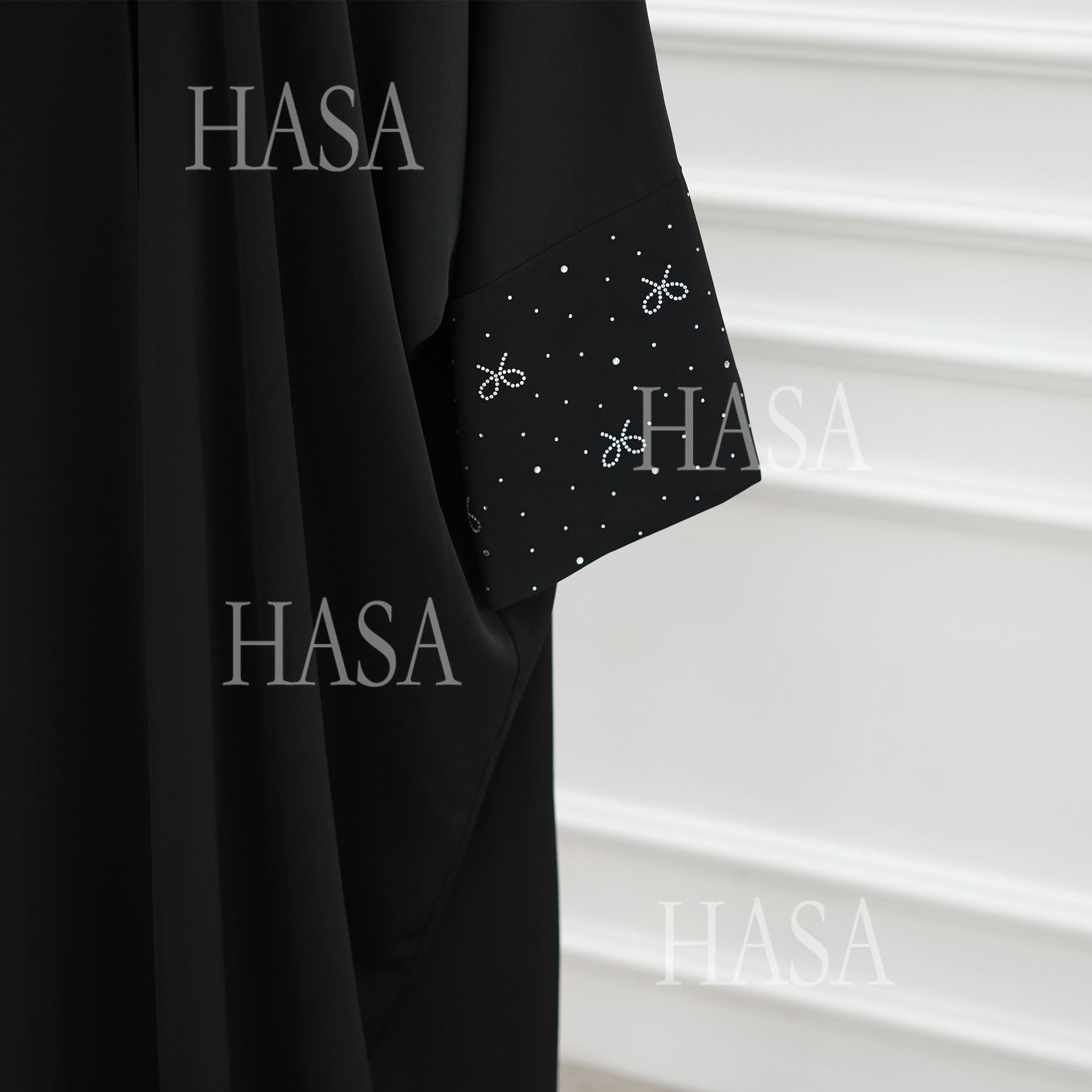 HS6492 Long-sleeved Robe with Bow and Beading