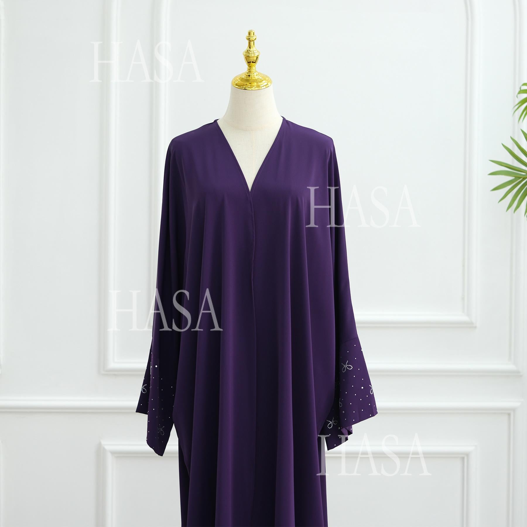 HASA HS1245 Ombré Abaya Loose Fashion Robe with Pleated Patchwork Detailing