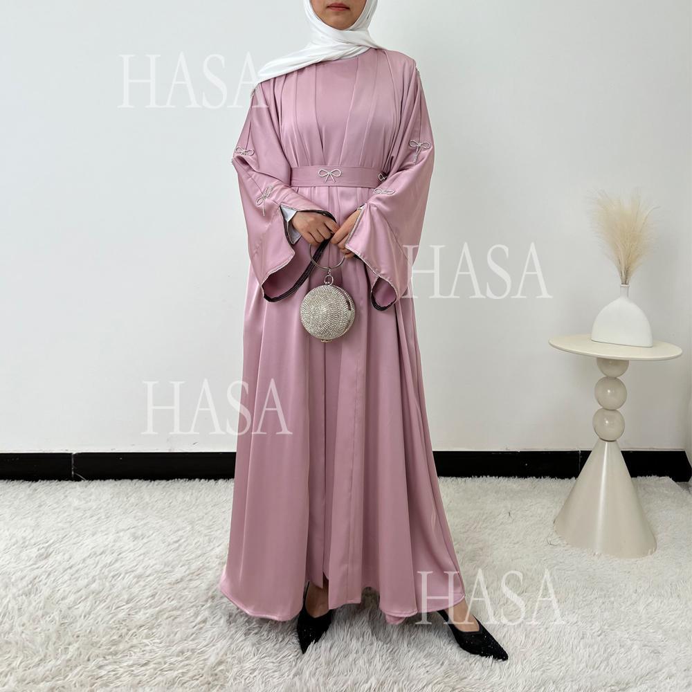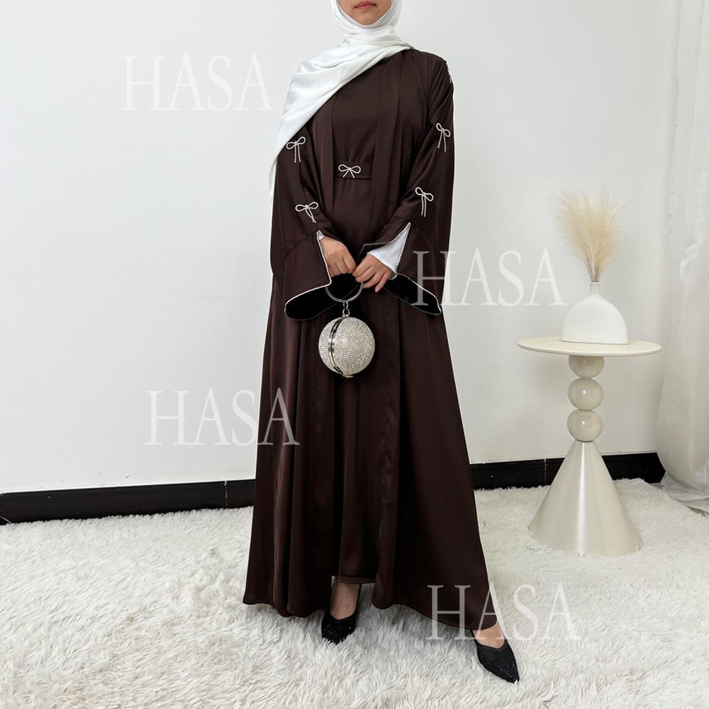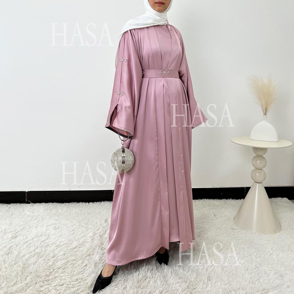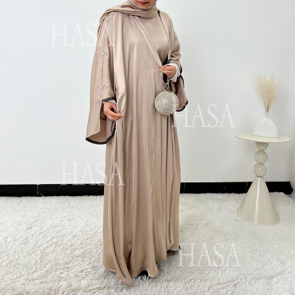 HASA HS1245 Ombré Abaya Loose Fashion Robe with Pleated Patchwork Detailing
