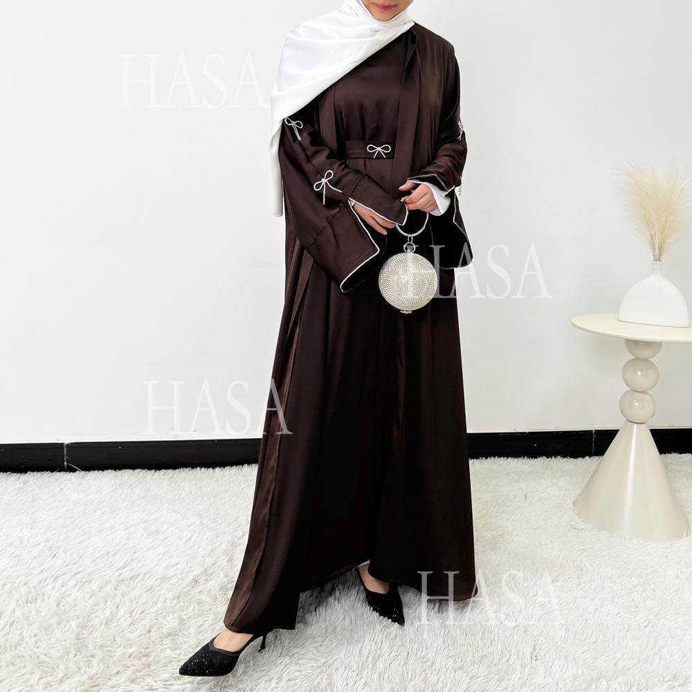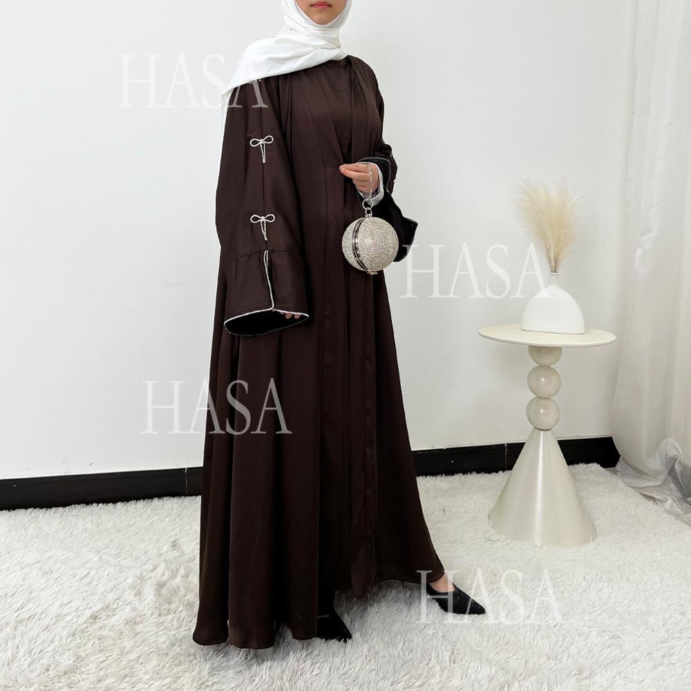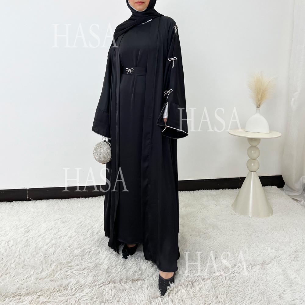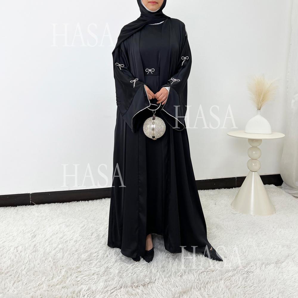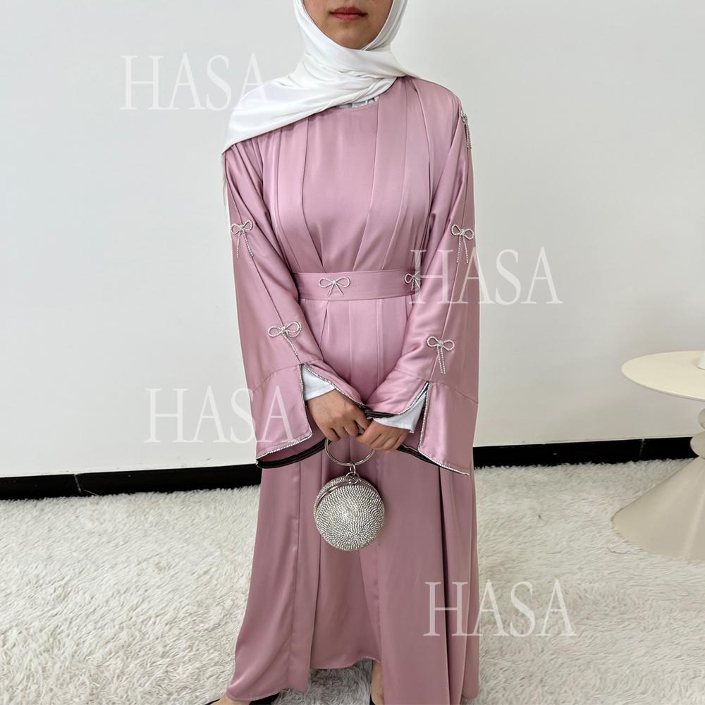 HASA HS1245 Ombré Abaya Loose Fashion Robe with Pleated Patchwork Detailing