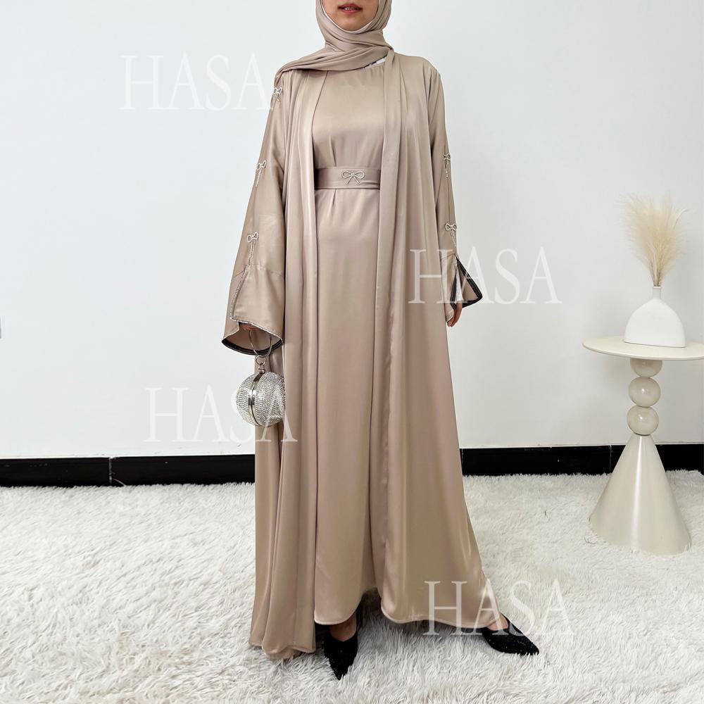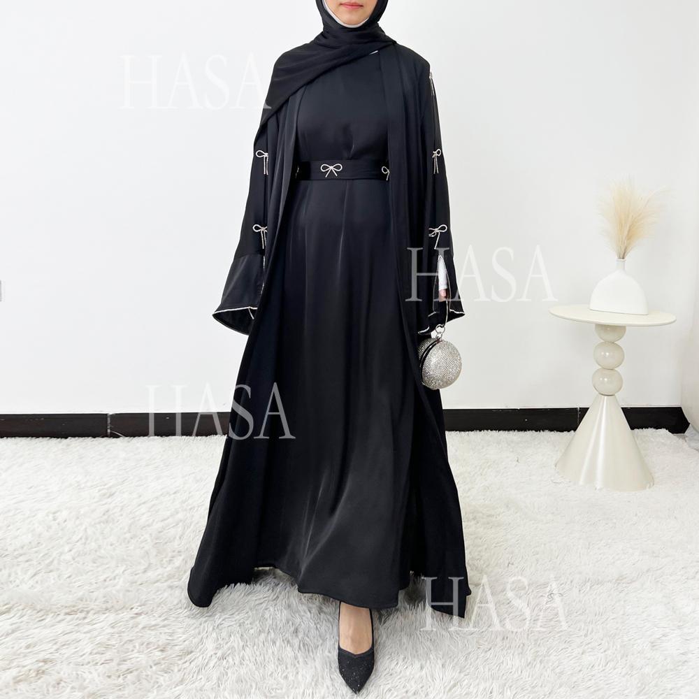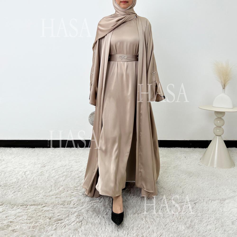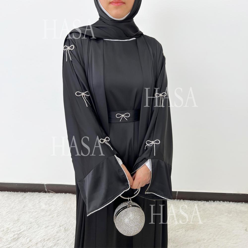 HASA HS1245 Ombré Abaya Loose Fashion Robe with Pleated Patchwork Detailing