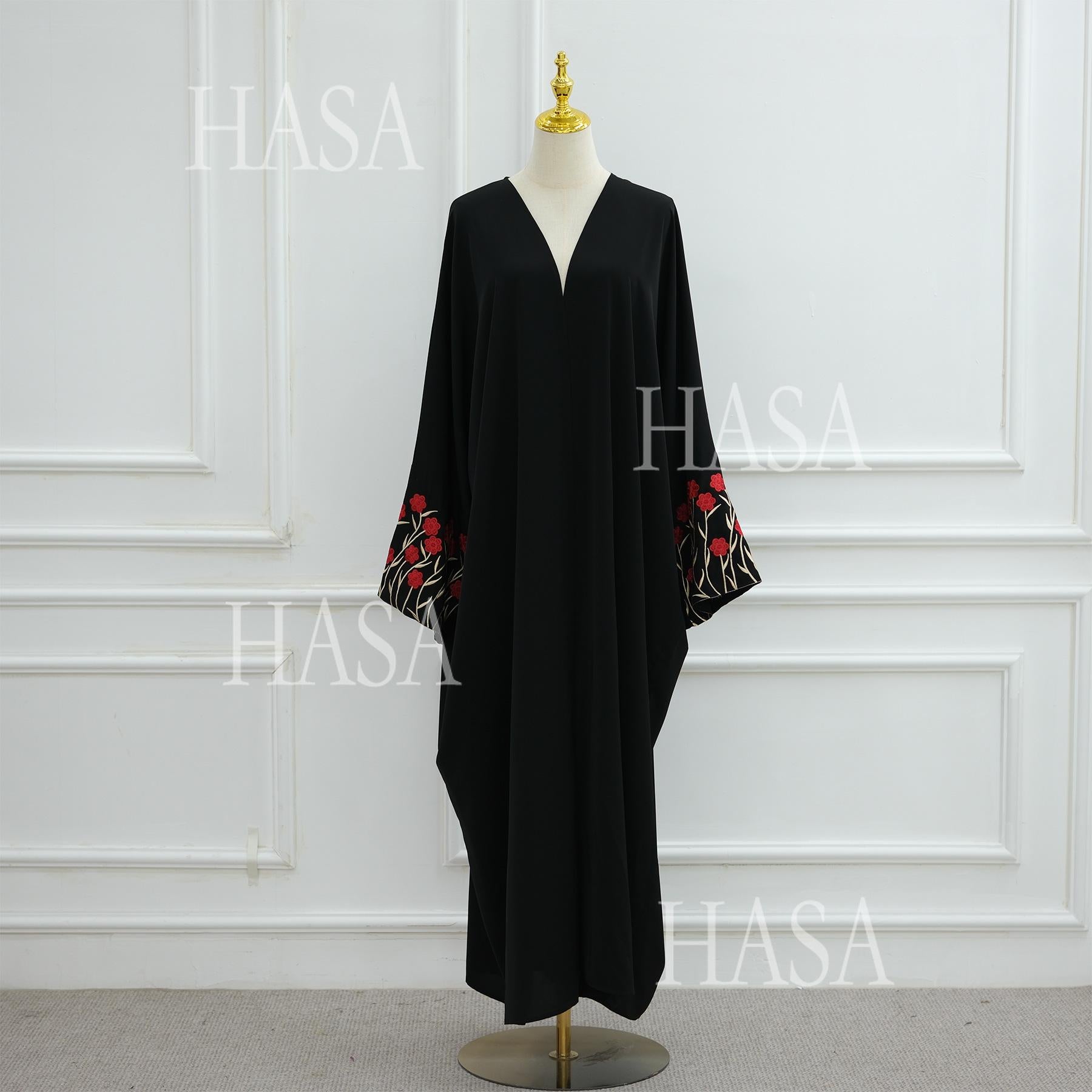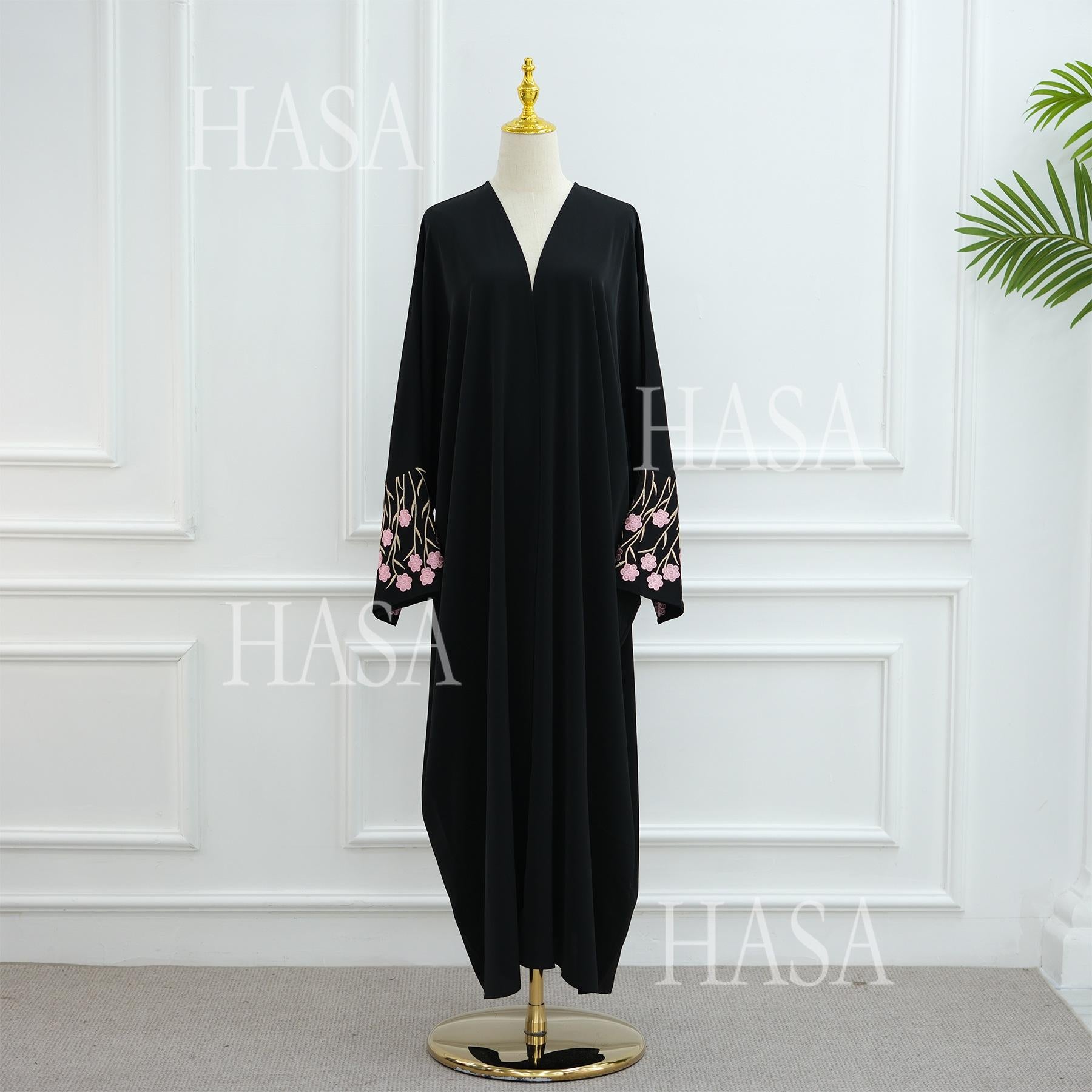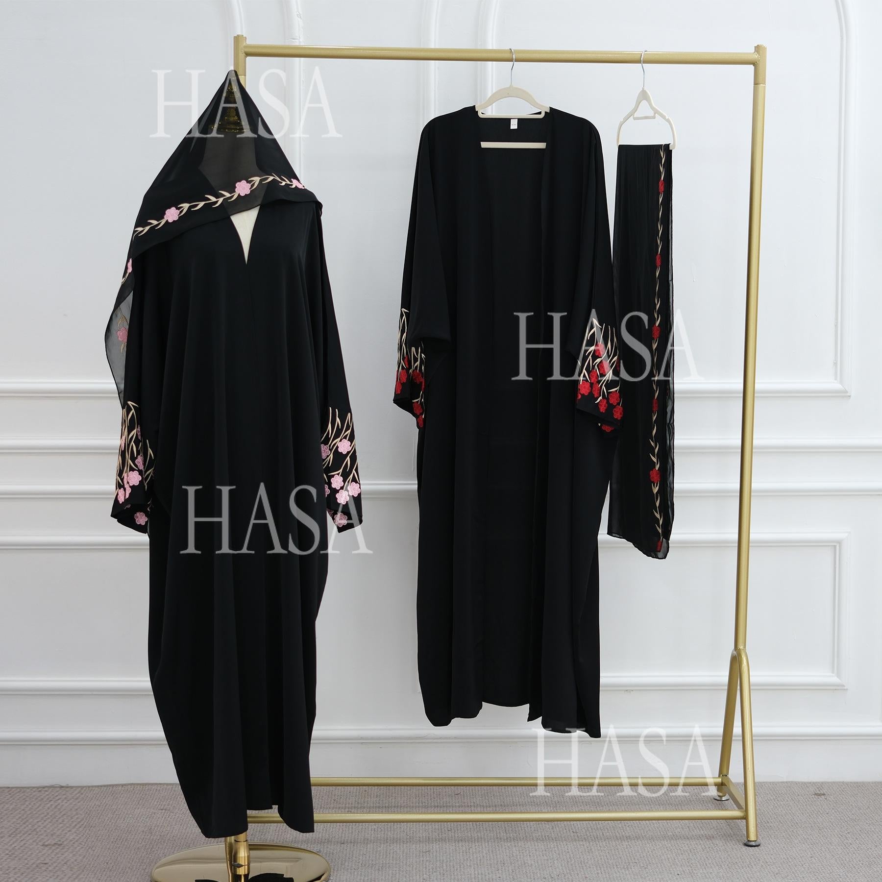 HS6529 Embroidered cardigan robe with headscarf, optional inner wear combination