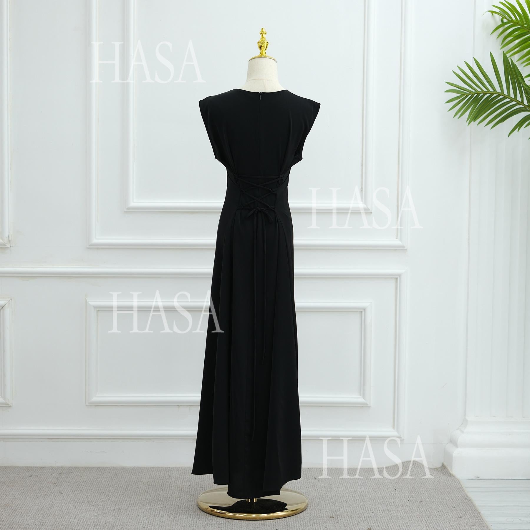HASA HS5866 Elegant Long Skirt with Tie Waist and Wide Swing Design